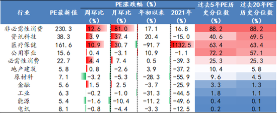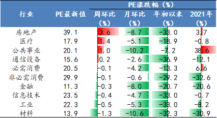 表15:本周(6.20-6.24)港股各行业估值涨多跌少