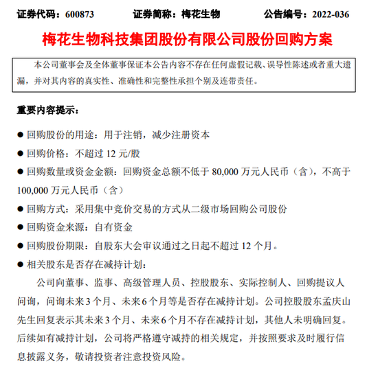 图2:梅花生物最新回购方案