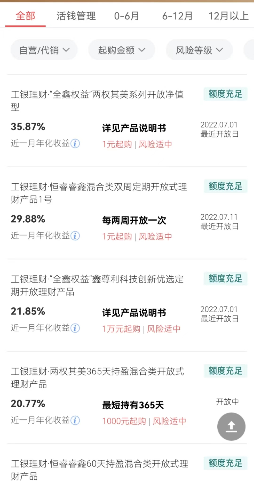 工商银行APP显示,近一个月以来,工银理财旗下多只理财产品近一月年化收益率超过20%,有产品超过30%。从权益类理财产品表现来看,近两个月以来,银行理财公司首款权益类理财产品“阳光红卫生安全主题精选”净值由此前的最低点0.6316回升至0.7775。
