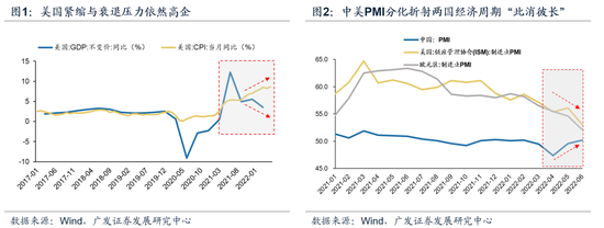 (一)政策暖风下中美“此消彼长”的中国优势,驱动本周A股“独立行情”持续。(1)5月份以来我们基于估值底、盈利底、政策底框架,在大势研判上从“慎思笃行”转向“不卑不亢”,认为市场将从21.12-22.4的“泥沙俱下”转向具备结构性配置机遇,并在10多篇报告中积极推荐结构性机会;6月份我们进一步转向“此消彼长,独立行情”,并在6.19《“此消彼长”独立行情的三条主线》及6.25《此消彼长,水到渠成——22年A股中期策略展望》详细阐述背后逻辑:本轮独立行情最大驱动力源自于:中国决策层致力于以经济建设为中心、恢复经济活力改善市场风险偏好,而同时海外股市如美股则呈现“衰退预期+货币紧缩”的组合而持续下跌。中国政策暖风下中美“此消彼长”中国优势凸显,驱动“独立行情”继续。(2)海外:美国5月份PCE同比为6.35%,同比增速仍在抬升。本周华尔街大幅下调美国经济增长预期(将美国Q2的GDP预期增速从2.5%下调至1%,将Q3的GDP预期增速从2%下调至1%),带动美债利率出现显著下行,作为美国经济主要推动力的消费者支出亦有放缓迹象,美国经济衰退速度大概率将快于市场预期(参见6.25《此消彼长,水到渠成》的判断);(3)国内:6月份中国制造业PMI重回扩张区间,复工复产下的经济正处于修复通道,同期美国、欧元区PMI显著下滑,中美经济金融经济周期错位正朝着我们此前判断的“此消彼长”方向演进。