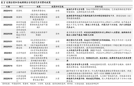 政策支持下,生产、需求快速恢复。从需求端看,政策拉动下汽车销量快速上升。今年以来国内疫情反复,汽车消费受损,4月汽车销量当月同比大幅下滑至-47.6%。目前国内疫情防控已取得积极进展,促进汽车消费相关政策正不断加码,成为点燃汽车需求的引擎。4月13日国常会鼓励汽车等大宗消费,并支持新能源汽车消费和充电桩建设。5月23日国常会提出放宽汽车限购,阶段性减征部分乘用车购置税600亿元。5月31日财政部、税务总局对符合要求的车型减半征收车辆购置税。多重政策支持有望进一步提振汽车消费。5月汽车销量同比降幅收窄至-12.6%,从高频数据看汽车消费正快速反弹,截至6/19,乘用车日均批发销量当周同比已达到70%。