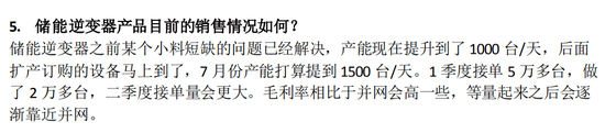 “老大哥”阳光电源高歌猛进,业内其他厂商也不甘落后。此前,锦浪科技在接受投资者调研时表示,“储能逆变器产能现在提升到了1000台/天,后面扩产订购的设备马上到了,7月份产能打算提到1500台/天。”