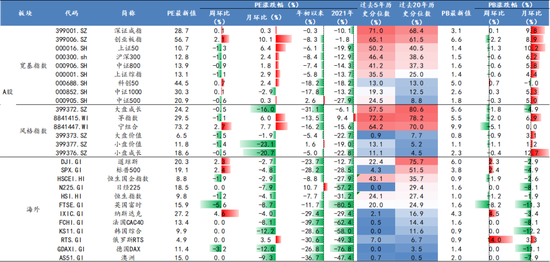 2.2、 市场估值:海内外主要指数估值多数下降,A股ERP有所回升