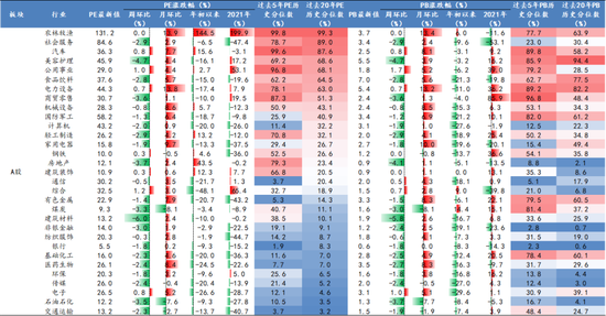 表7:本周(7.4-7.8)一级行业估值多数下降,综合、汽车和电子领涨