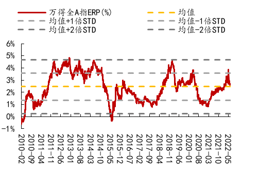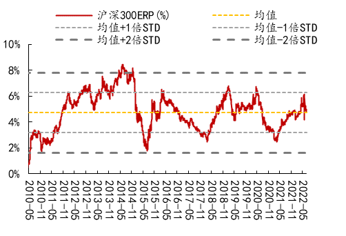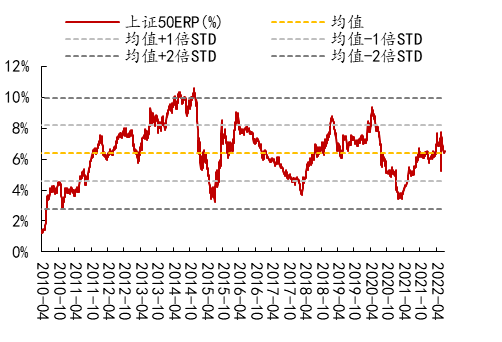 图10:上证指数ERP水平处于“1倍标准差上限”以下