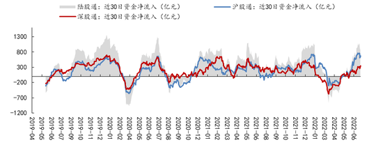 图7:本周(7.4-7.8)陆股通近30日合计净流入规模扩大