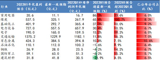 表2:筛选出已披露业绩预告占比5%以上且中报业绩超预期的行业