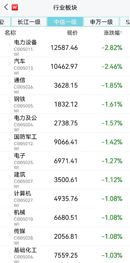 通信、汽车、电力设备及新能源跌幅靠前,分别下跌1.85%、2.46%、2.82%。市场成交额为8625.31亿元,较前一交易日明显萎缩。