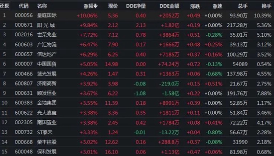 7月25日,房地产行业涨幅居首,达1.07%。其中,皇庭国际、阳光城等2只地产股联袂涨停。