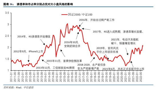 科技周期下,市占率和渗透率交替占优影响大小盘风格