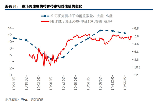 5、中小盘公司研究覆盖不足,市场关注的相对变化会对估值产生影响