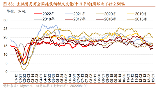 建筑钢材成交量十日均值周环比下行。8月9日主流贸易商全国建筑钢材成交量为13.13万吨;从过去十日移动均值情况来看,主流贸易商全国建筑钢材成交量十日均值为16.36万吨,周环比下行2.55%。