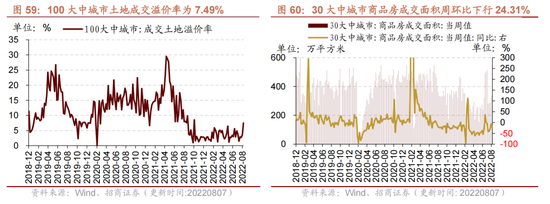 本周土地成交溢价率上行、商品房成交面积下行。截至8月7日,100大中城市土地成交溢价率为7.49%,较上周上行3.87个百分点;截至8月7日,30大中城市商品房成交面积当周值为256.83万平方米,较上周下行24.31%