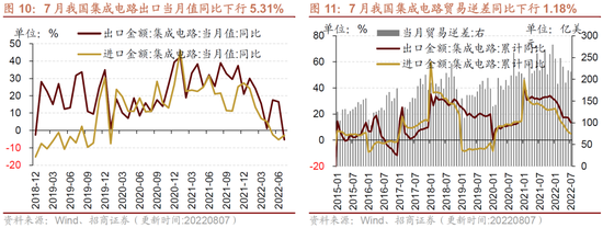 3、7月集成电路出口金额同比由正转负,进口金额、贸易逆差同比降幅缩窄