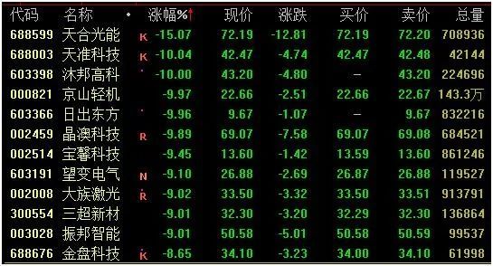 此外,天准科技、沐邦高科、京山轻机、日出东方等跌停,晶澳科技逼近跌停,隆基绿能跌近8%,最新市值分别为1626亿元、4255亿元。通威股份逆市上涨4.88%,最新市值2699亿元。