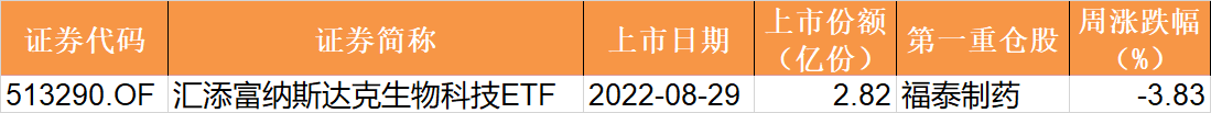 目前有1只ETF披露下周上市,跟踪标的为纳斯达克生物科技指数。