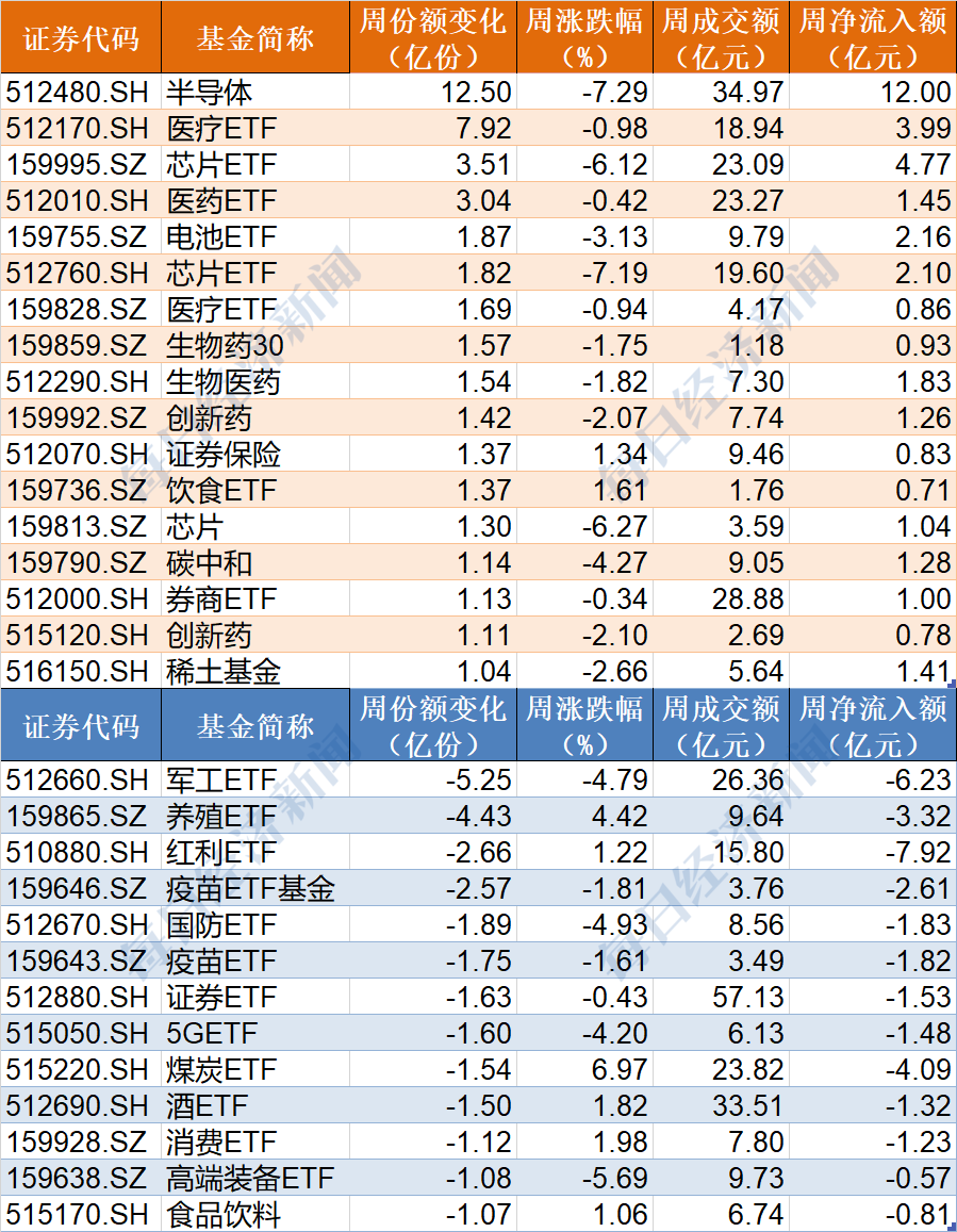 值得注意的是,半导体已连跌三周,却被资金连续加仓,本周份额突破140亿份,创历史新高。
