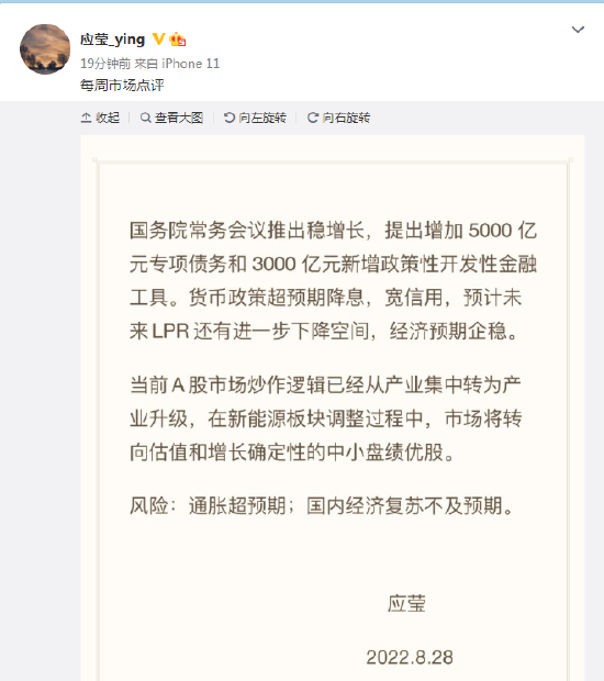 8月28日消息,徐翔妻子应莹在微博发布“每周市场点评”: