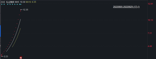 短短半个多月股价暴涨5倍多,弘业期货成为今年以来最牛新股。8月5日上市时,发行价为1.86元,至今股价涨幅高达564%。