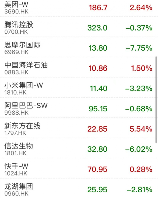 盘面上,医药、有色、科技股领跌,康希诺生物绩后跌超13%,联想集团跌近5%,哔哩哔哩、中国宏桥跌超4%,思摩尔国际跌近8%创历史新低,但美团逆势涨2.64%。另一方面,教育、煤炭股走强,天利国际控股涨近25%,中煤能源涨超5%、兖矿能源上涨。