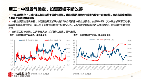 军工是相对来说,在一个不确定的年代,景气逻辑相对确定的方向,它的不足是微观层面的可投资性。所以除了产业景气外,我们需要观察的就是军民融合和军工的国企改革的推进,这两个领域的继续推进会提升军工股的业绩兑现度和可投资性,我们对此持乐观态度,我们预计军工股在机构中配置比例还会逐步上升。