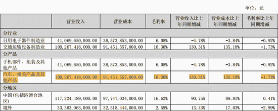 不过,比亚迪汽车业务的毛利率出现下降情形。