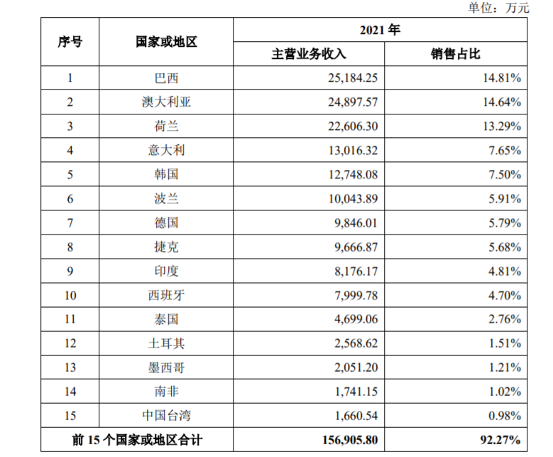 固德威称,公司2021年境外销售前15大国家或地区销售额占2021年境外销售收入的92.27%,而《调查》中仅提及了巴西、印度、土耳其、墨西哥4个国家,公司在该4个国家的销售收入占2021年境外销售收入的22.34%。