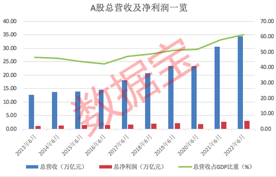 总体看, A股公司实现总营收34.55万亿元,创历史新高,同比增长9.24%。占GDP比重达到61%,创历史新高。实现净利润首次突破3万亿元,同比增长3.19%。