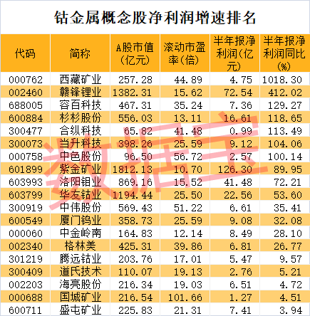 数据宝统计,A股市场上布局钴相关业务的公司超过20家,上半年净利润同比增长达到七成以上。西藏矿业、赣锋锂业、容百科技、杉杉股份、合纵科技、当升科技、中色股份等净利润翻倍增长。