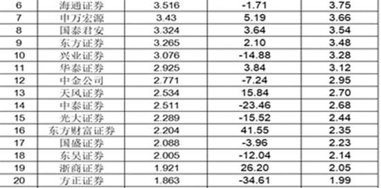 招商证券以微弱优势超过海通证券,跻身前五名,海通排名第六。
