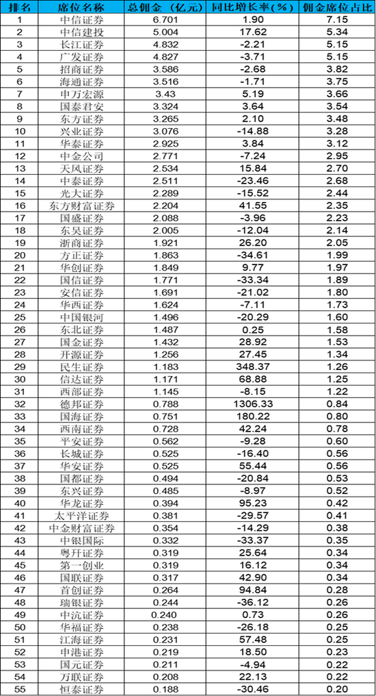 其中,中信证券以6.7亿元蝉联佣金第一名,也是业内上半年唯一佣金收入超过6亿元的券商;