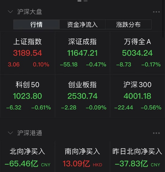 截至5日上午收盘,上证指数上涨0.1%,深证成指下跌0.47%,创业板指下跌0.09%。北向资金净流出65.46亿元。