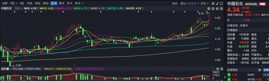 说到高低切换,刚才提到了中国石化和中国石油。从中国石化的表现看,均线系统已经进入典型的多头排列。另外,中国石油从技术上看,也不错,但还需挑战前期的高点。