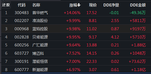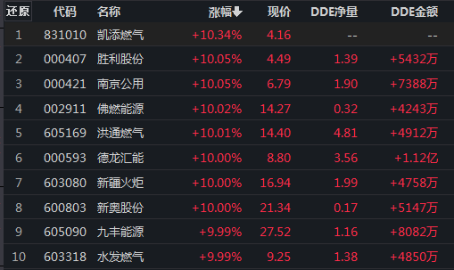 除了俄乌冲突概念板块大涨之外,天然气、油服板块掀涨停潮,南京公用、洪通燃气、新疆火炬、九丰能源、贝肯能源等十余股集体涨停,富瑞特装、首华燃气、凯添燃气涨超10%。