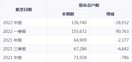 截至2022年中报,恒宝股份股东户数超12.6万户。