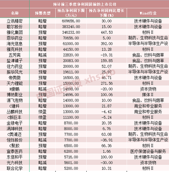从行业角度看,电子行业预喜家数较多。立讯精密、歌尔股份、海光信息、雅克科技、帝奥微等多家电子行业上市公司预计前三季度归属于上市公司股东的净利润同比增长。部分头部公司第三季度净利润增速超过前三季度整体净利润增速。