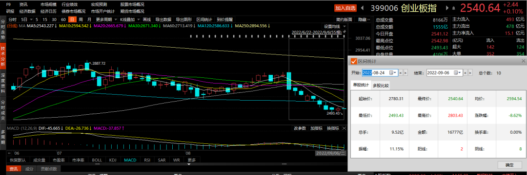 7月以来,A股处于震荡调整状态。8月24日以来的10个交易日里,沪指累计跌去1%,创业板指累计跌近9%。北上资金净流出108.66亿元,加重市场低迷情绪。