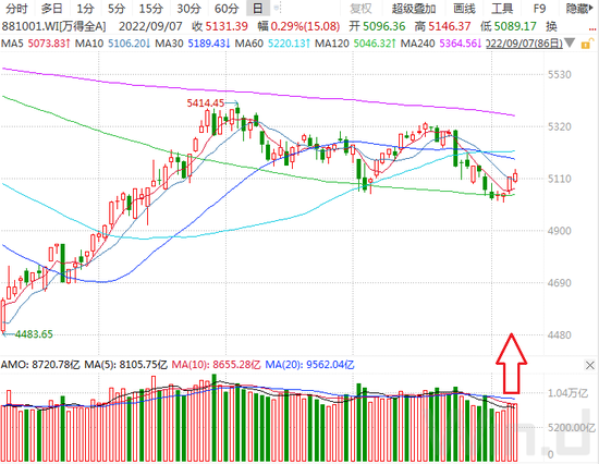 9月7日,万得全A小幅反弹0.29%,成交额为8721亿元,较前一交易日基本持平,同时K线4连阳。从技术图形上看,最近几个交易日,市场温和放量反弹,若无明显利空的情况下,当前反弹趋势有望延续。