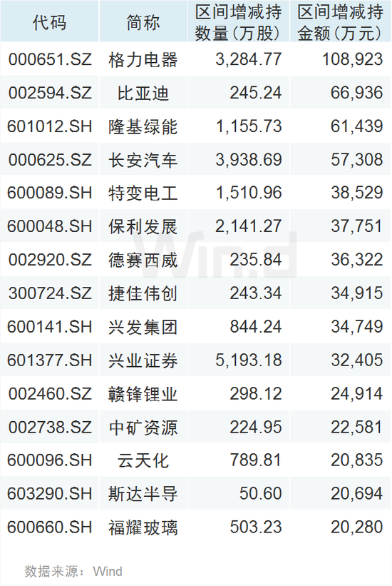 (注:增减持金额 = 增减持数量 * 9月6日收盘价,下同)