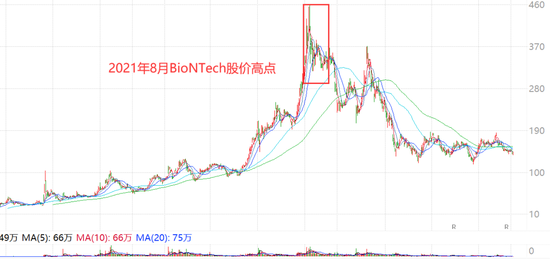 据Wind显示,自2021年8月股价创新高后,BNTX持续下跌。今年上半年,公司股价由257.80 美元/股下跌至149.10 美元/股,累计跌幅超过了40%(见图3)。