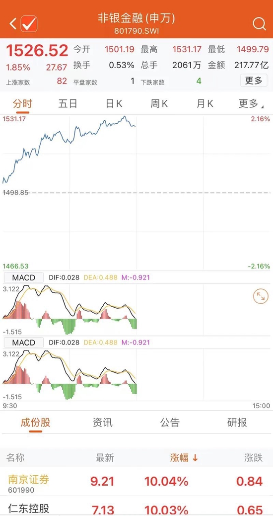 券商板块早盘异动,南京证券、民生控股涨停,长城证券、华西证券等多股跟涨。