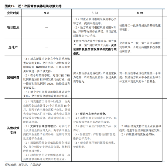 出口数据开始明显下行,稳增长预期再起,国常会表态积极:政策细则应出尽出托底经济。8月出口数据低于预期,内需修复受到疫情扰动等因素影响,在此背景下,李克强总理主持召开的近三次国务院常务会中,研判当前需求不足是突出矛盾,定调稳就业目标,巩固需求恢复基础,提振市场信心。会议充分部署政策用好可用工具:金融政策方面主要着力盘活专项债,更好发挥有效投资一举多得作用,降低信贷使用门槛,扩大信贷支持范围;对实体经济的政策重点关注项目建设、房地产领域和减税降费,激励企业增加投入提升创新能力。新一次常务会议重点关注就业,压实地方主体责任,拓展就业空间,培育壮大市场主体和经济新动能。中央督导和服务工作组赴各省开展和指导工作,充分展现中央助力经济恢复的决心。