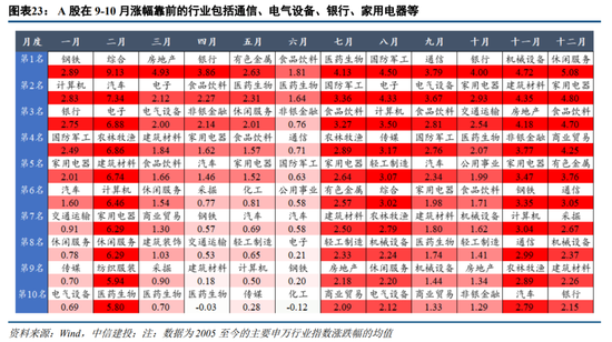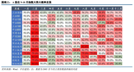 “季节效应”表明A股指数在9-10月大概率会迎来走强。从2005-2020年对上证指数月度胜率的复盘结果来看,上证指数在十月的胜率全年最高,为68.8%,在九月的胜率为全年次高,为56.3%,“金九银十”的季节效应明显。历史上9月涨幅中位数领先的前三行业为通信、电气设备、食品饮料,历史上10月涨幅中位数领先的前三行业为银行、家用电器、交通运输。