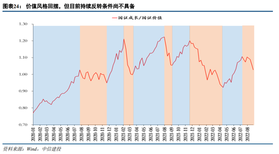 但整体经济弹性受限,大盘价值修复悲观预期之后,市场还会围绕三季报和景气持续方向继续演绎。风格难以真正切换,还是价值搭台成长唱戏。目前支持价值的还是在政策预期,而不是强刺激政策推动景气相对优势的反转。