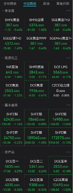 商品市场上,9月14日富时中国A50指数期货开盘跌1.3%。国内商品期市开盘多数下跌,基本金属领跌,沪锡跌超4%,沪镍跌近2%;化工品普跌,沥青跌超2%,PVC跌近2%;贵金属走低,沪银跌超2%;黑色系疲软,硅铁跌超2%,热卷、螺纹钢跌近2%;仅低硫燃料油、橡胶、棉纱等少数品种飘红。