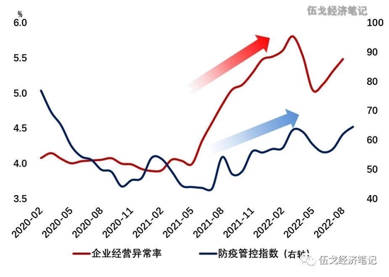过往力争资产收益最大化,如今寻求负债规模最小化。近期企业经营异常(停业、注销、吊销、撤销等)比率达到历史高位。分地域观察,该值与各地疫情持续天数呈正相关关系。工业企业利润同比持续收缩至负值区间,企业债券提前兑付量大幅增长。