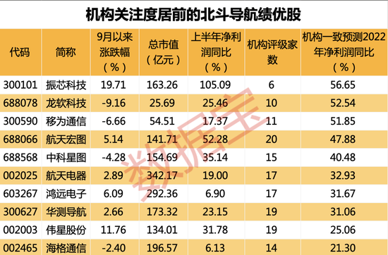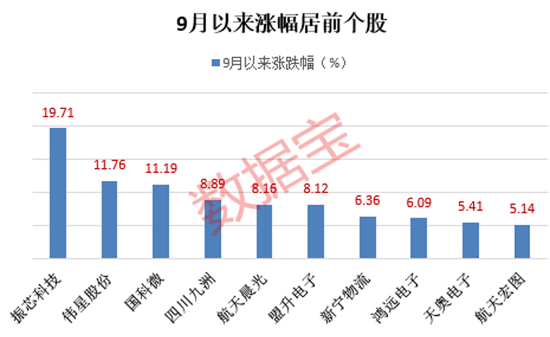 数据宝统计,A股中北斗导航概念股近50只,9月以来,接近半数个股录得累计上涨,其中振芯科技、伟星股份、国科微涨幅居前,均上涨超10%。