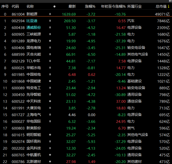 新能源概念跌近4%,同力日升、德赛电池、创元科技、智光电气、金晶科技、上海电力跌停,立新能源、海力风电、科华数据、东方日升、回天新材等大跌超过8%,龙源电力、国电南瑞、天合光能、TCL中环也大跌。