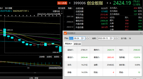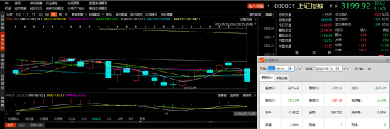 隔夜美股止跌微红,9月15日,A股高开低走,市场抛售情绪浓厚,日成交额逾9100亿元。关键指数、个股、板块普跌,房地产、银行、食品饮料护盘,沪指下跌1.16%报3199.92点;电力设备、汽车、军工、电子板块重挫,拖累创业板指收跌3.18%报2424.19点;科创50跌逾3%,沪深300跌约1%,上证50微跌。