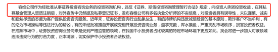 对此,上海证监局认为,公司关于案涉行为不属于公司行为、没有实际危害的申辩意见不成立。一是在案证据显示前述四人涉案期间均为公司员工,二是在案证据证明相关员工使用工作手机和工作微信开展营销,相关营销话术重复或相似,营销行为模式高度统一,组织特征明显,可以认定公司在证券交易活动中存在信息误导,三是公司构成信息误导行为不以接收误导性信息的相关投资者最终成为公司客户为必要条件。